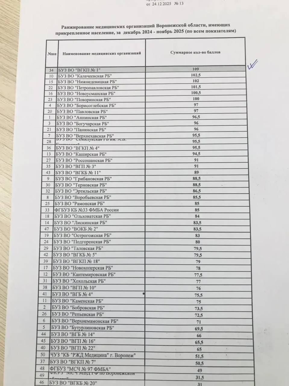 Главврач заявил - рейтинг поликлиники вовсе не 1,1 (как в «Яндексе»), а 1 е место среди всех поликлиник области по версии ТФОМС за период декабрь 2024 — ноябрь 2025 года.