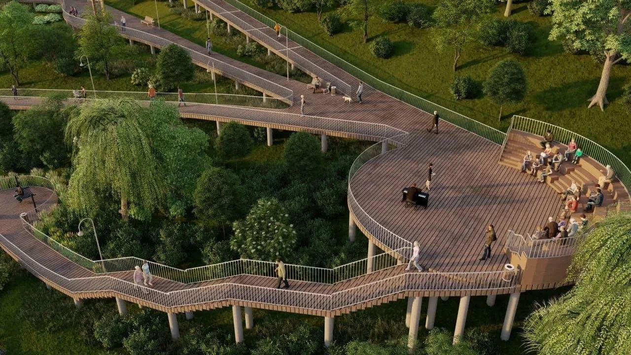 Появится зона для отдыха с лавочками и панорамными видами на Дон, будут разработаны прогулочные маршруты с выходами к воде. В парке поставят качели и шезлонги, обустроят амфитеатр, обновят парадную лестницу.