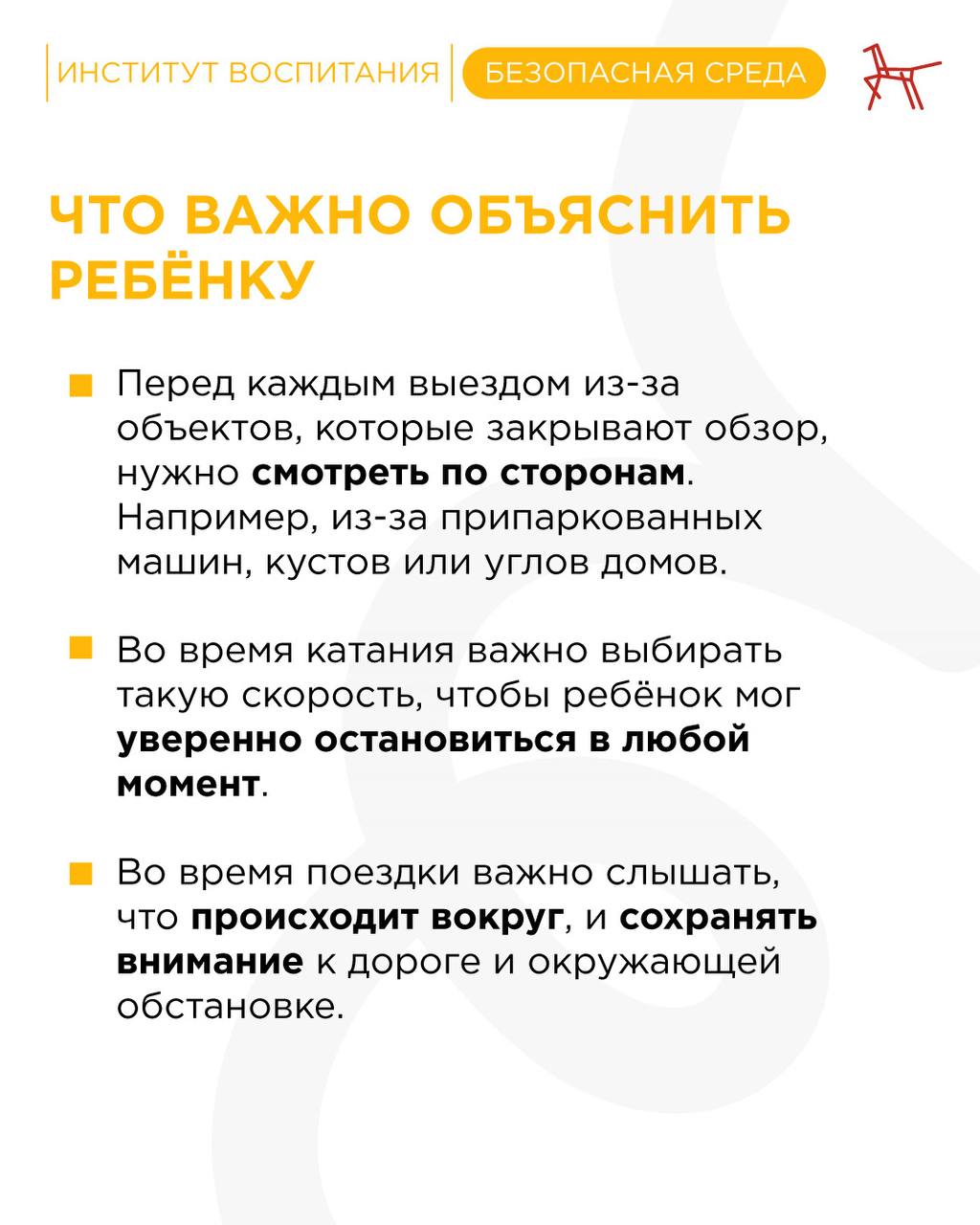 Поэтому с детьми важно заранее обсудить простые и понятные правила: где лучше кататься, как вести себя рядом с проездами и почему защитная экипировка обязательна. В карточках собрали основные рекомендации для родителей.
