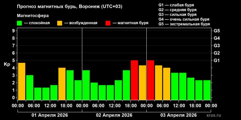 Воронежцев предупредили о магнитных бурях 2 и 3 апреля