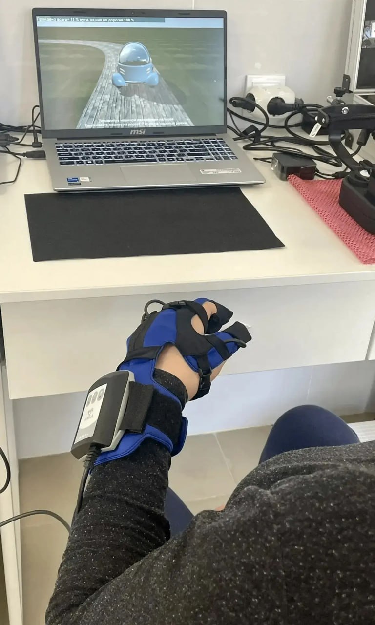В поликлинику на Арзамасской поступил новый тренажер – реабилитационная перчатка для восстановления моторики рук с биологической обратной связью. Перчатка оснащена датчиками, реагирующими на малейшие движения руки. Это позволяет следить за прогрессом пациента и корректировать программу реабилитации на ходу.
