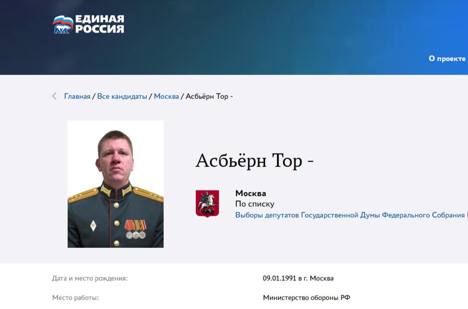 Несмотря на скандинавское имя, Асбьёрн Тор родился в Москве. Тор действующий офицер и участник СВО – имеет боевые награды.