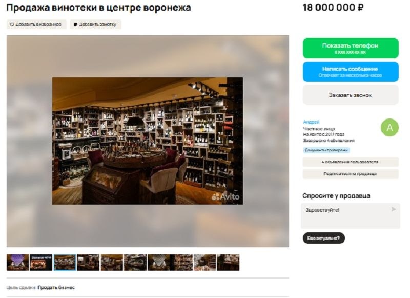 Любопытный факт – эта самая винотека два года назад признавалась самым красивым магазином России, такое звание не поскупился ей выдать Минпромторг РФ. Торговую точку продают вместе с персоналом в лице кавистов [от фр. caviste — «смотритель погреба», прим. ред.] и управляющего.