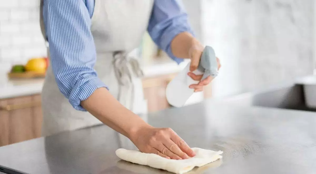 - Кухонные поверхности. Столешницы и другие рабочие поверхности требуют ежедневной уборки, но раз в неделю необходимо использовать более мощные дезинфицирующие средства.