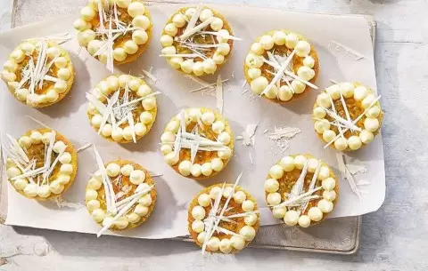 Не забудьте наполнить каждое пирожное кусочками свежего манго и украсить белым шоколадом для завершения. Эти изысканные мини-десерты станут ярким акцентом на любом столе и распространенной темой для обсуждений среди гостей.