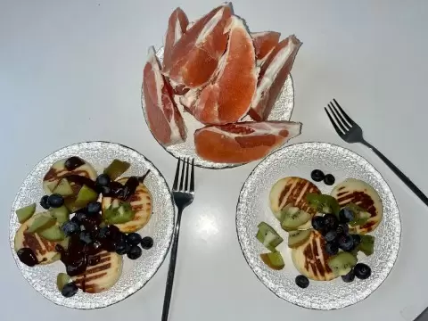 - Блюдо состояло из творога, киви, банана и голубики.