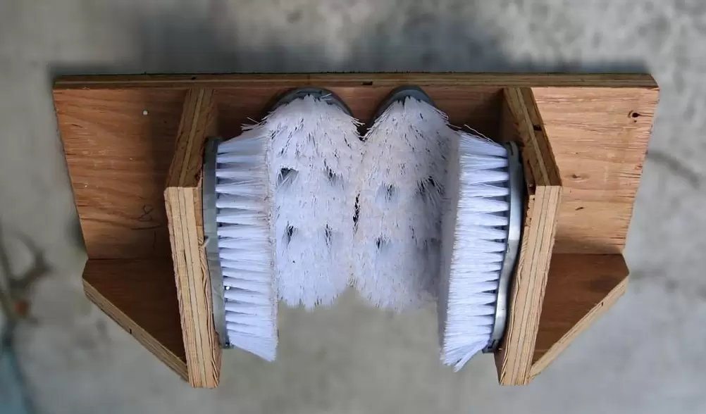 2. Крепление щеток. Начать с самой жесткой щетки, прикрепить ее с помощью саморезов, предварительно просверлив направляющие отверстия, чтобы избежать трещин. Таким образом, прикрепить остальные щетки, важно, чтобы все элементы были надежно зафиксированы без люфтов.
