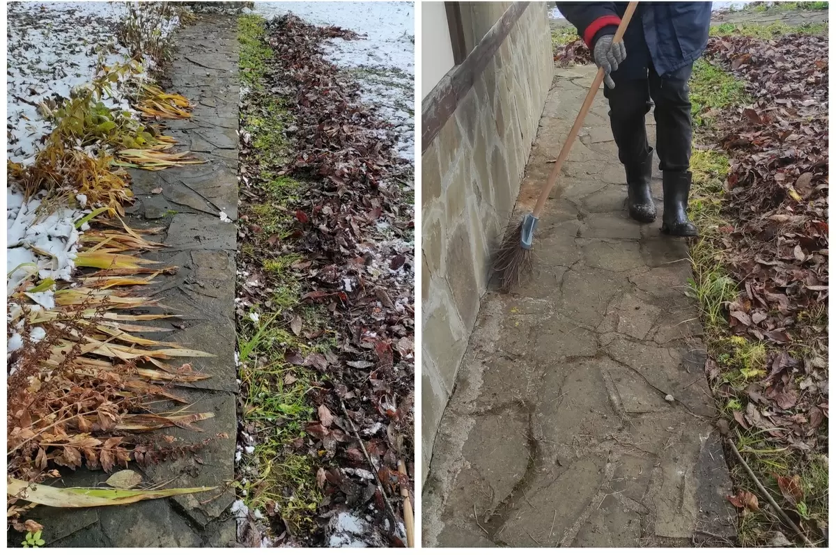 - Чистка дорожек и подъездных путей: Удаление листвы и мусора с участков, где будет собираться снег, способствует более эффективной уборке зимой.