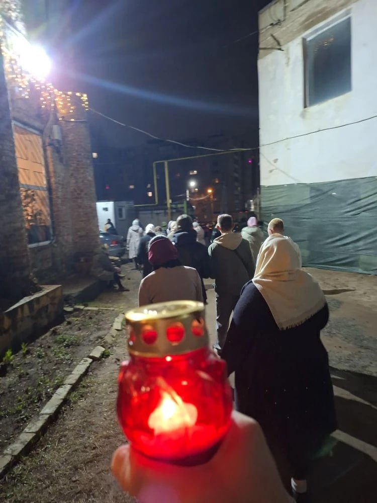 Читатели поделились с нами ночными кадрами пасхального богослужения. Это Храм Рождества Христова на Придаче.