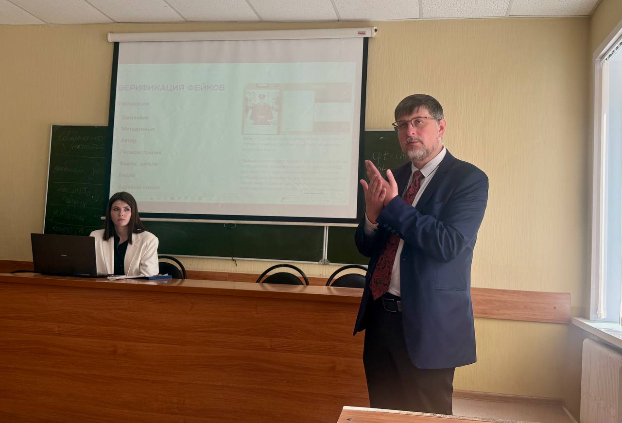 Андрей Александрович Черваков поделился актуальной информацией о таком явлении, как информационная война, дал советы по распознаванию фейков и рассказал о способах противодействия и профилактики распространения ложной информации среди населения.