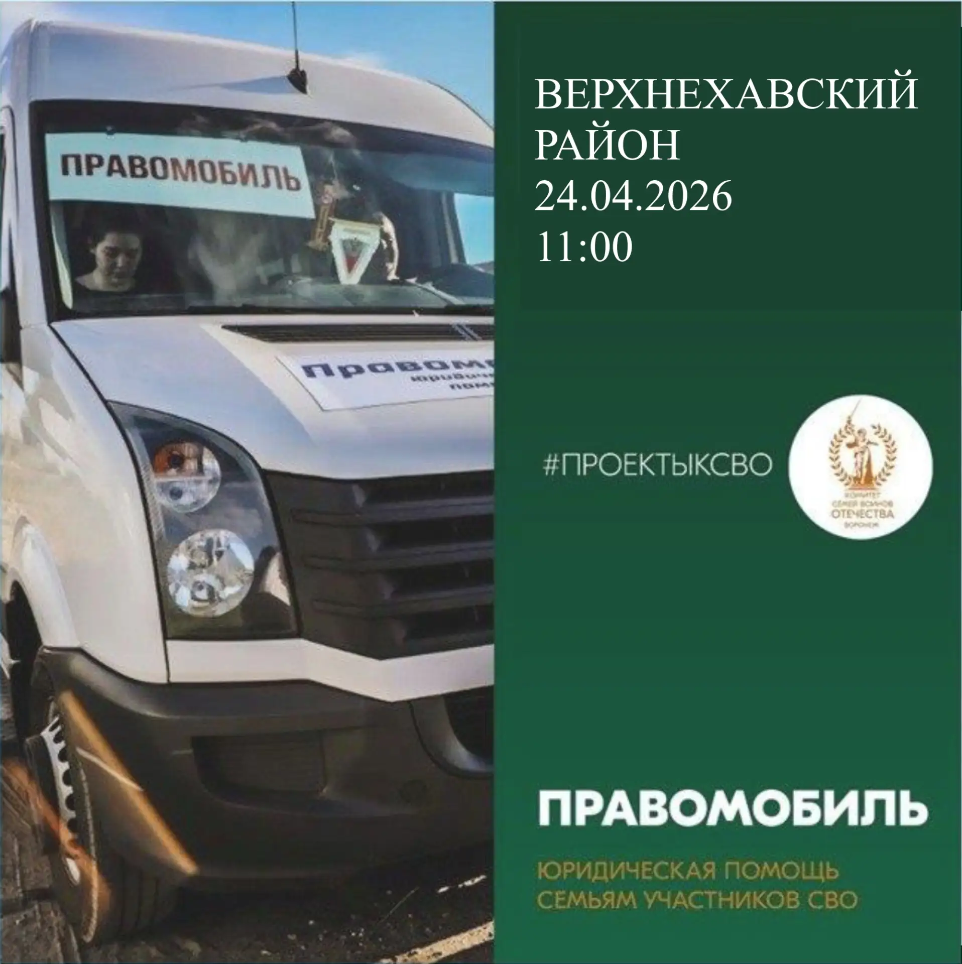 Помощь окажут в рамках выездного проекта «Правомобиль». Встреча с юристом состоится 24 апреля в 11:00.