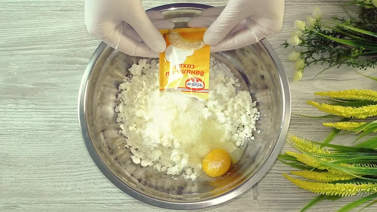 Творог не обязательно перетирать, достаточно его просто смешать с яйцом. Важно обратить внимание на консистенцию теста: мука пойдет в зависимости от влажности. Тесто должно хорошо держать форму, поэтому при необходимости можно добавить больше муки. Из полученной массы закатываются небольшие шарики, которые выкладываются на противень. Обязательно оставьте между ними достаточно пространства для роста во время выпечки.