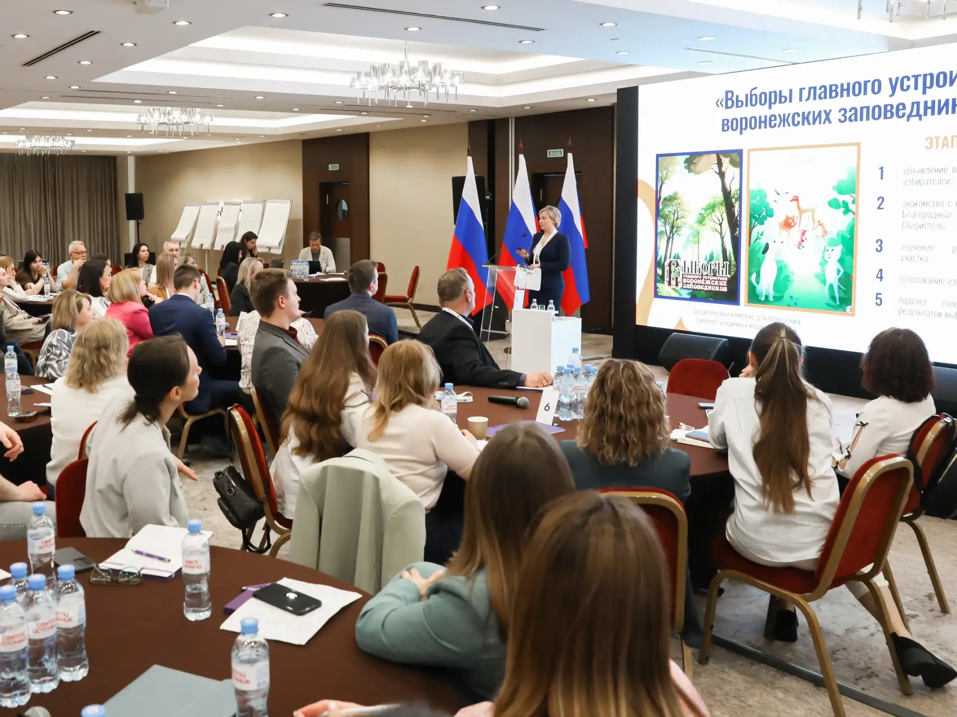 Заместитель председателя ИКВО Наталья Репченко представила новый просветительский проект облизбиркома «Выборы в КидБурге». Он был реализован в этом месяце совместно с АУ «МФЦ» в Воронежской области на площадке детского города профессий КидБурга.