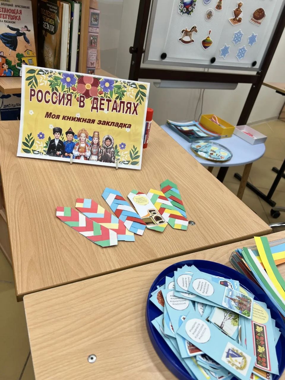 Программа началась с творческого задания. На мастер-классе ожил «Ковёр дружбы»: участники украшали его аутентичными национальными узорами – от хохломы до орнаментов народов Севера. А на мастер-классе «Россия в деталях», дети и взрослые с увлечением мастерили разноцветные книжные закладки в цветах флагов разных республик.