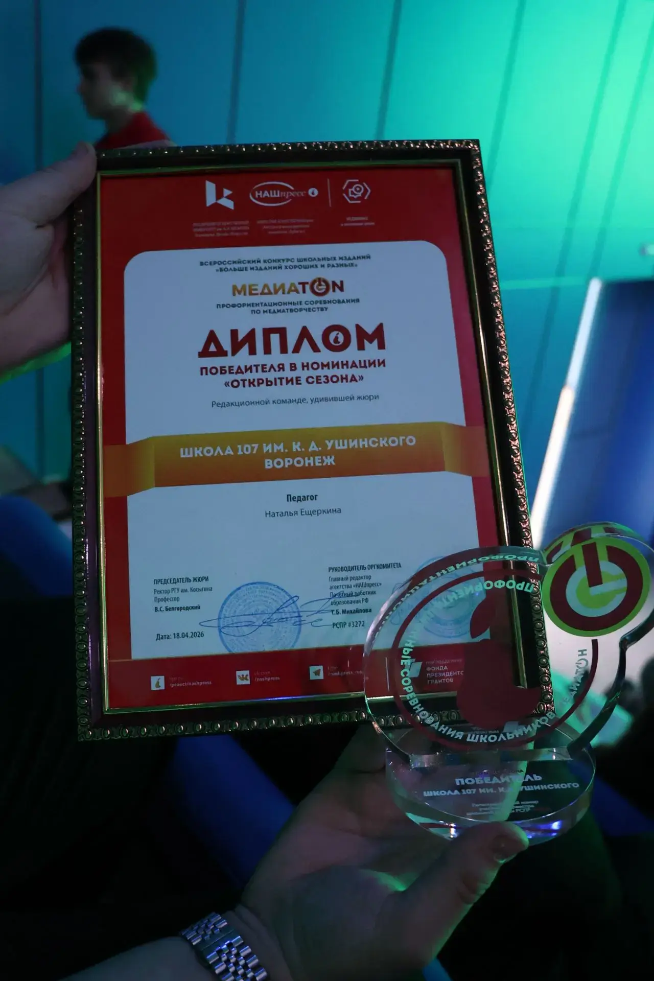 Призёрами всероссийского конкурса «Медиатон» стали учащиеся школы №107 имени Константина Дмитриевича Ушинского.