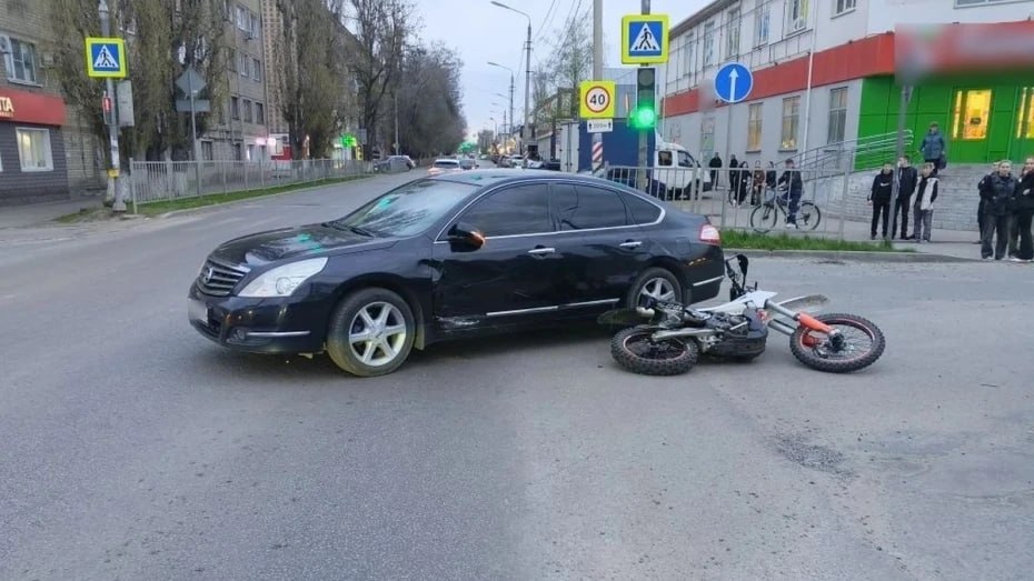 Авария случилась накануне на улице Матросовской в районе дома №33. Водитель автомобиля Nissan Teana, 34-летний житель Воронежа, при повороте налево на регулируемом перекрестке не уступил дорогу и столкнулся с мотоциклом, которым управлял 16-летний парень. Мотоциклист ехал прямо.