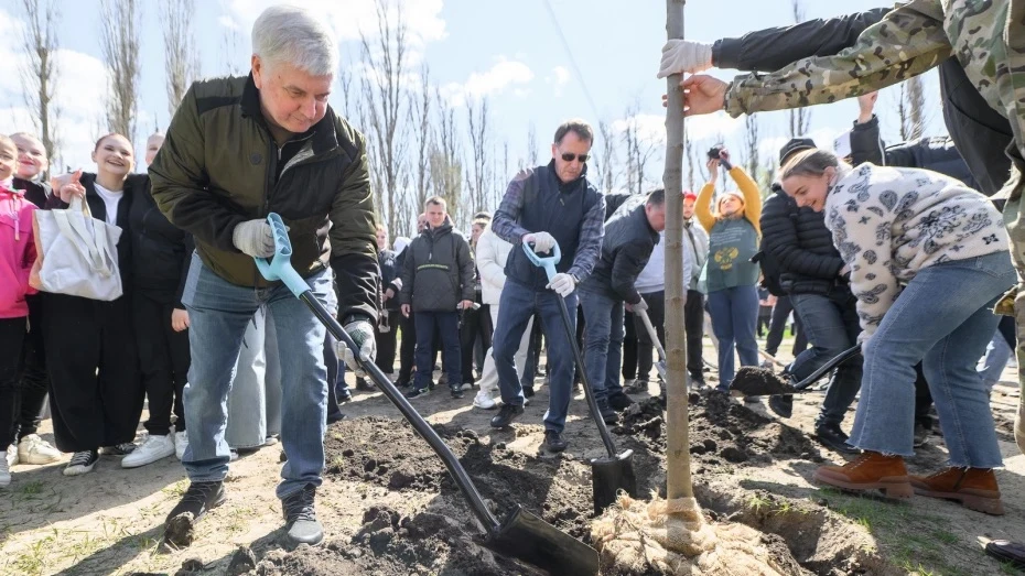 Александр Гусев и Алексей Гордеев высадили деревья в парке и на набережной в Воронеже