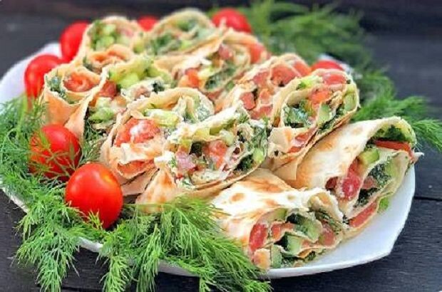 Лаваш можно подать как в рулетах, так и в нарезке на мелкие кусочки, что делает его удобным для приема пищи в любом формате. Кроме того, закуску можно украсить зеленью, лимоном или свежими овощами, добавляя яркие акценты и привлекающий вид.