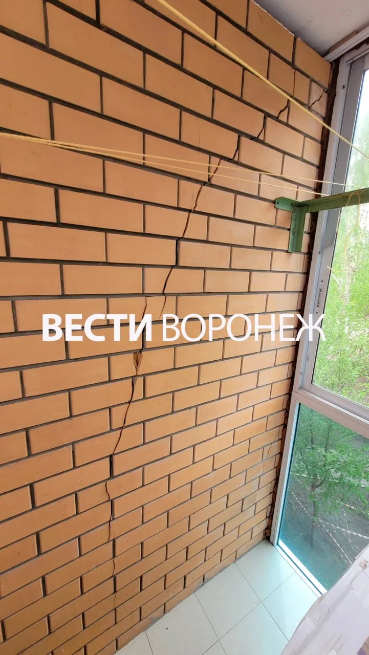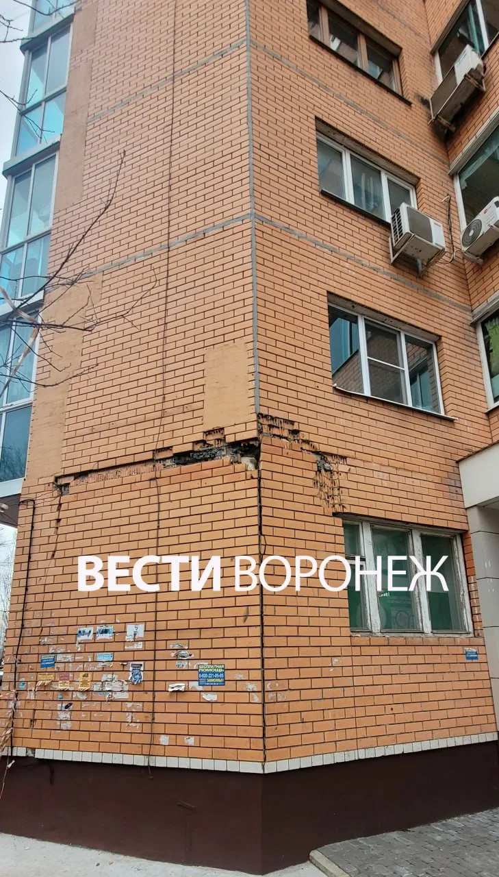 С фасада дома №95а осыпаются кирпичи, а в одной из квартир появилась сквозная трещина. Обращения в УК «Воронежжилсервис» и к застройщику не помогают – ремонт обещают годами, но дальше «заплаток» дело не идёт.