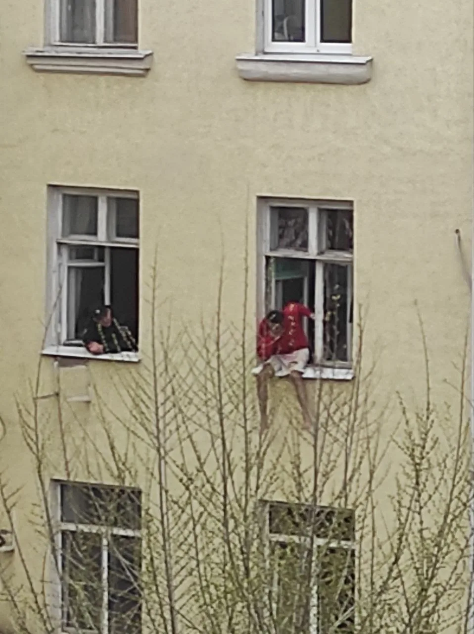 Он с полудня там сидел, сначала в майке, потом красный свитер одел. Только что сдался полиции. Видимо, действие дурмана прошло, - пишет нам подписчик.