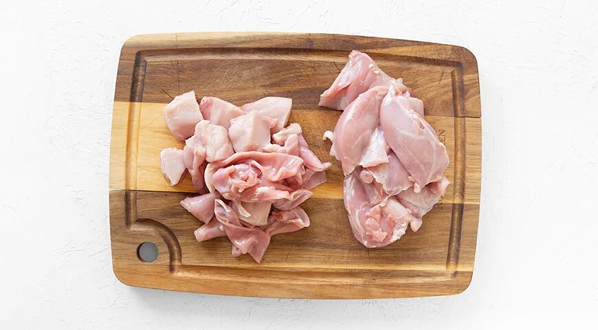Первым делом необходимо разделать кролика. Половину тушки следует очистить от костей и нарезать на небольшие кусочки. Конечно, можно использовать и готовое филе, но, как говорится, ничего не сравнится с процессом готовки с нуля.