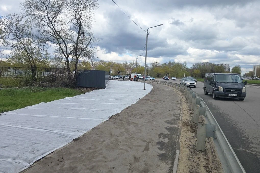Сегодня комбинат благоустройства засеял газонную часть площадью около 200 кв.м вдоль Димитровского кольца.